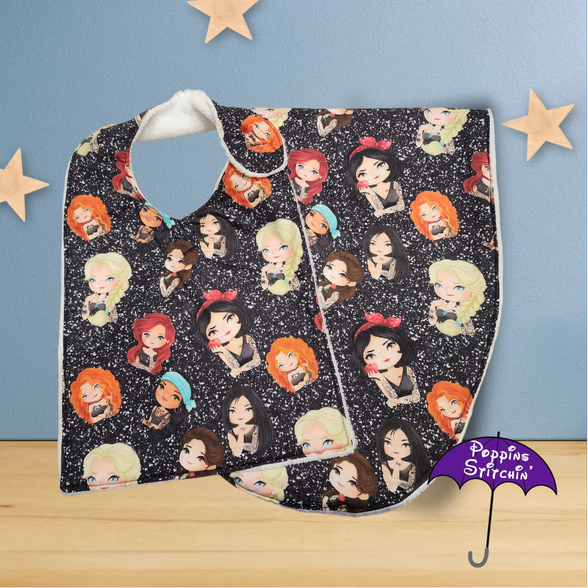 Bib and spit up (burping bib) set with snaps closures. Gorgeous print to show off your style combined with super absorbent backing.