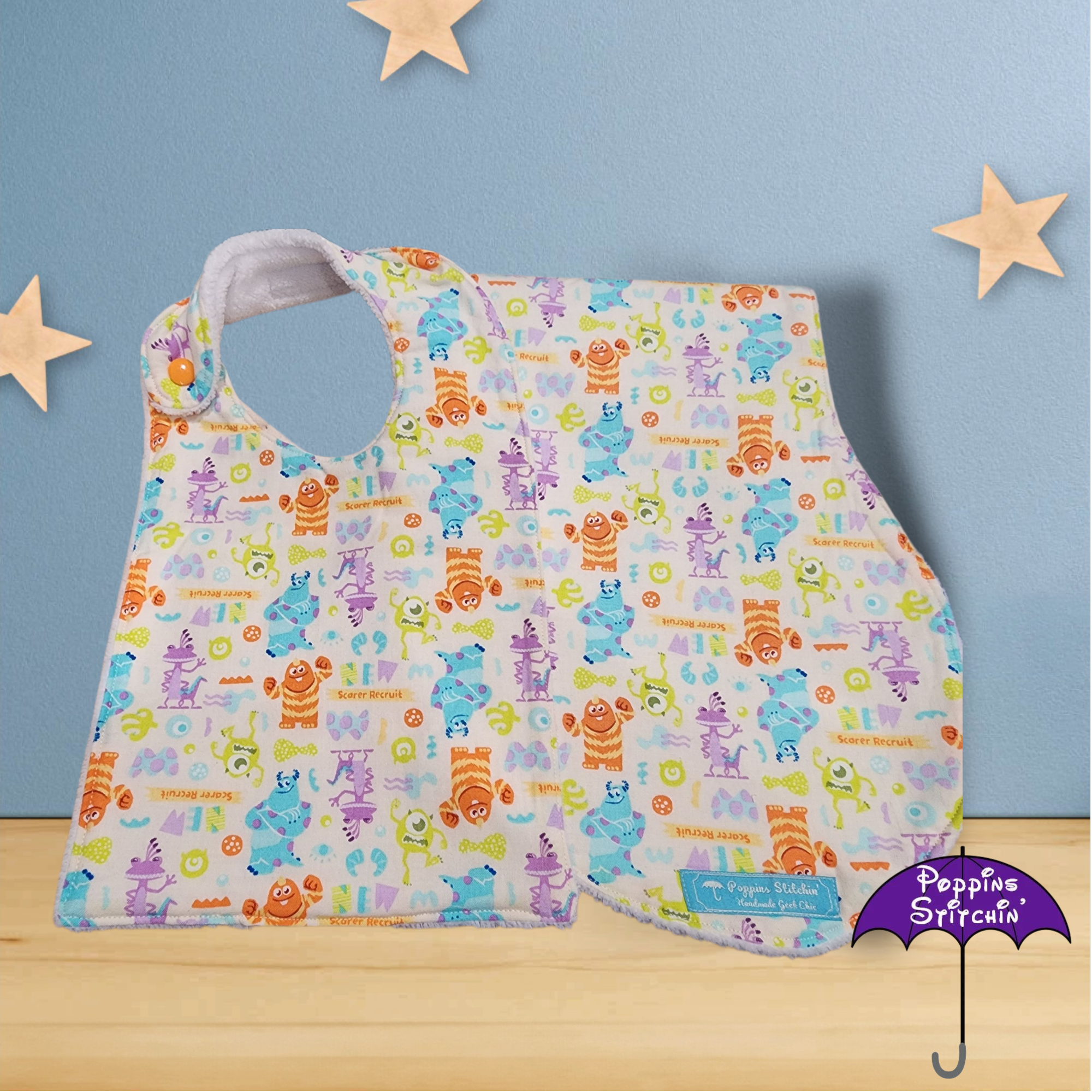 Bib and spit up (burping bib) set with velcro closure. Gorgeous print to show off your style combined with super absorbent backing.